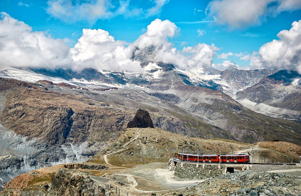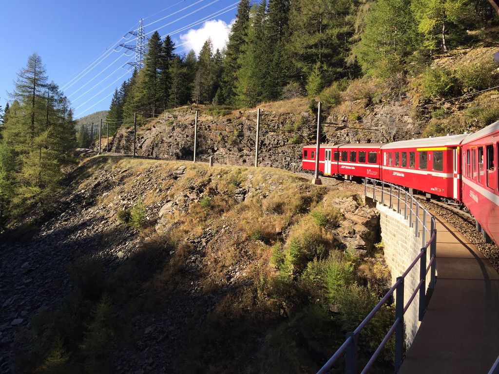Lungo un percorso mozzafiato il treno più alto d’Europa, noto anche come Bernina Express, scala le Alpi senza l’uso della cremagliera.